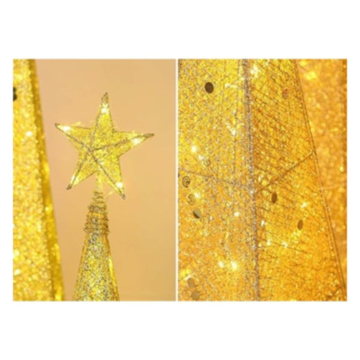 Olvídate de los árboles tradicionales voluminosos y complicados de montar. Nuestro Árbol Pirámide Metálico de Navidad incluye Luz LED es la solución perfecta para aquellos que buscan una decoración navideña elegante, práctica como ahorradora de espacio.