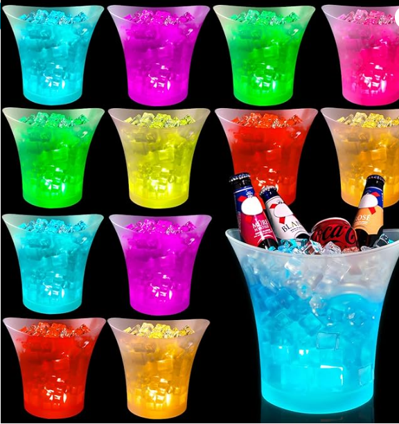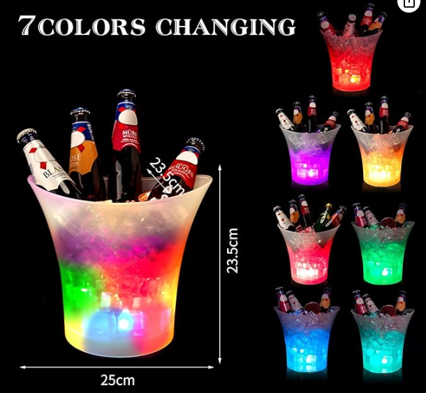 Gran capacidad de 5 L: cada una de estas cubiteras LED grandes para bebidas tiene la gran capacidad de 5 L, que puede contener fácilmente al menos 2 piezas de vinos, champanes y cervezas de 750 ml o media docena de vinos, champanes y cervezas de 330 ml, o botellas de vino de 4 piezas, o latas de 8 piezas o botellas de champán grandes de 3 piezas, ideales para bares, KTV y fiestas