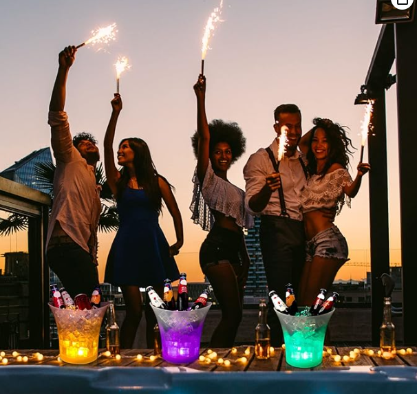 Usos extensivos: los cubos enfriadores LED que cambian de color son aplicables para una amplia gama de aplicaciones, como picnic, barbacoa, campamento, fiesta en el jardín, club, restaurante, hotel, bar, reunión familiar y más, que serán accesorios prácticos para fiestas para usted
